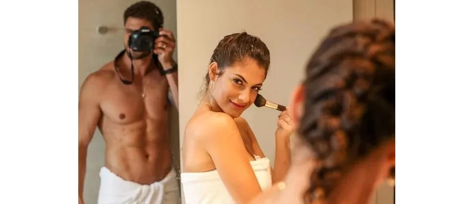 O casal de ex-BBBs Mariana Gonzalez e Jonas Sulzbach também ousaram em cliques usando apenas toalhas, com muita intimidade e sensualidade envolvidas. É também um clique que mostra conforto e sensibilidade.