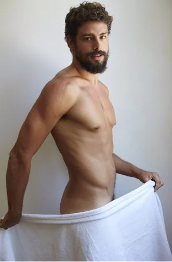O ator Rômulo Neto também foi clicado com apenas uma toalha.